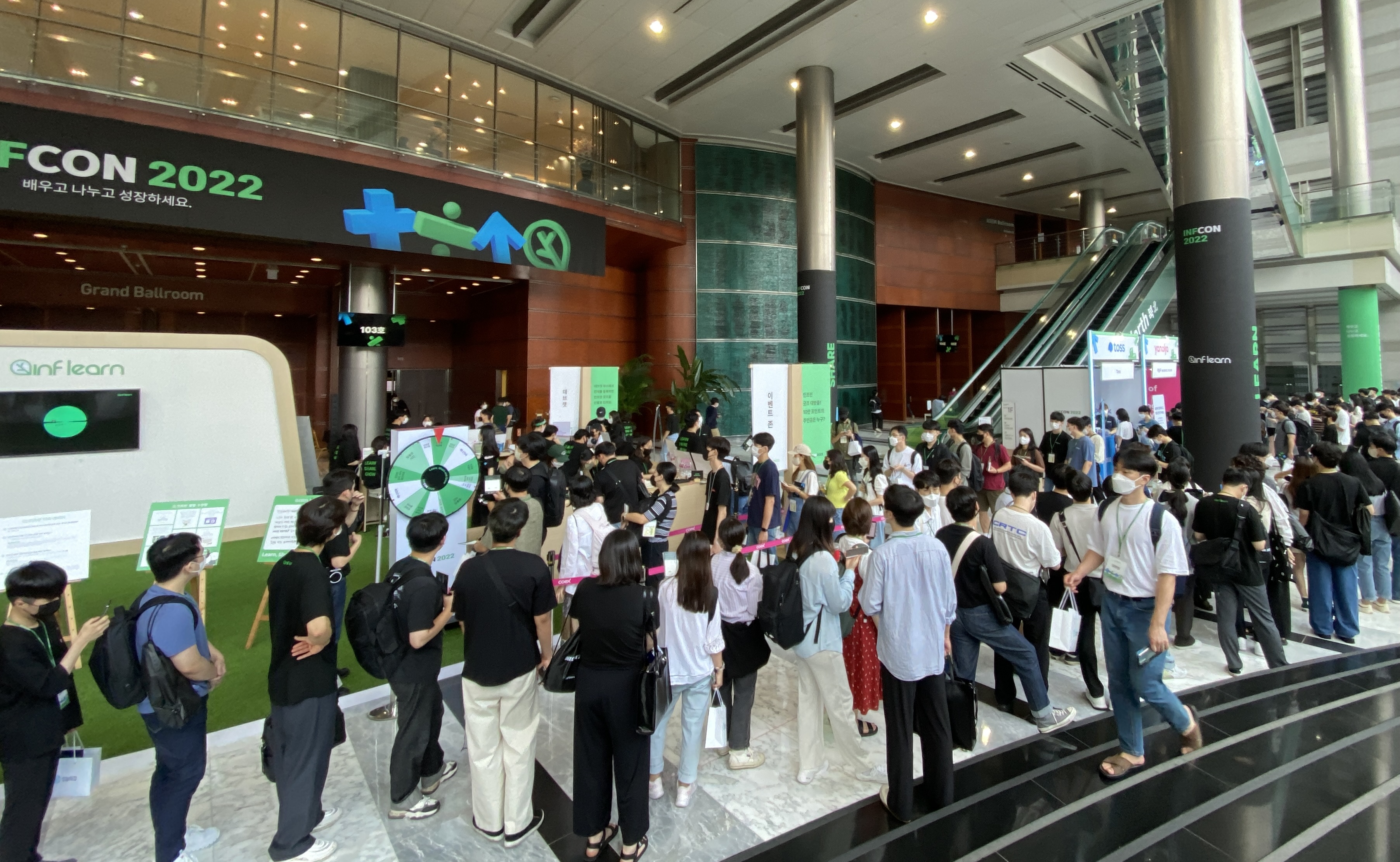 인프콘은 코로나가 시작되고 처음으로 규모 있게 열린 오프라인 컨퍼런스였다. 게다가 인프런을 운영하는 인프랩에서 하는 행사였으니 많은 개발자분들의 관심을 받았던 거 같다. 실제로 신청자가 엄청 많아서 추첨 경쟁률이 높았다고 한다.
