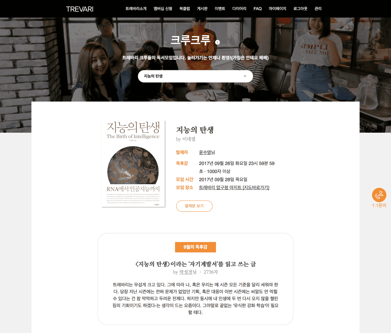 이곳만 봐서는 트레바리가 어떤 곳인지 알 수 없었다. 트레바리가 얼마나 매력적인지 어필이 되지 않았고 어떤 활동을 할 수 있는지도 알기 어려웠다.